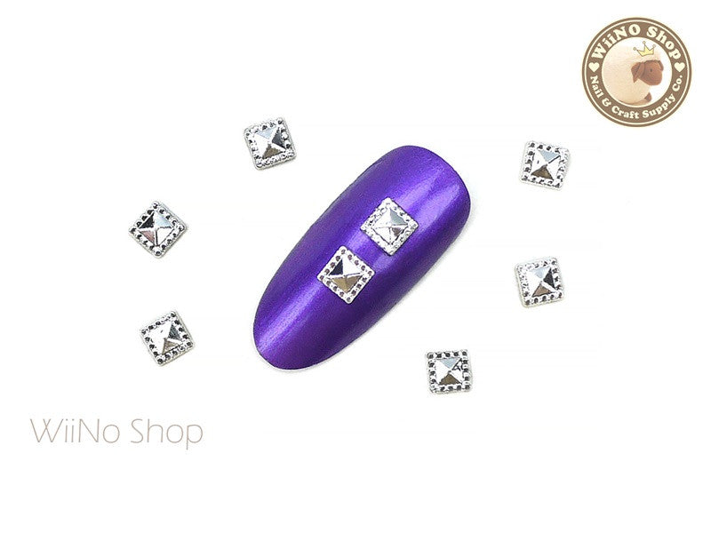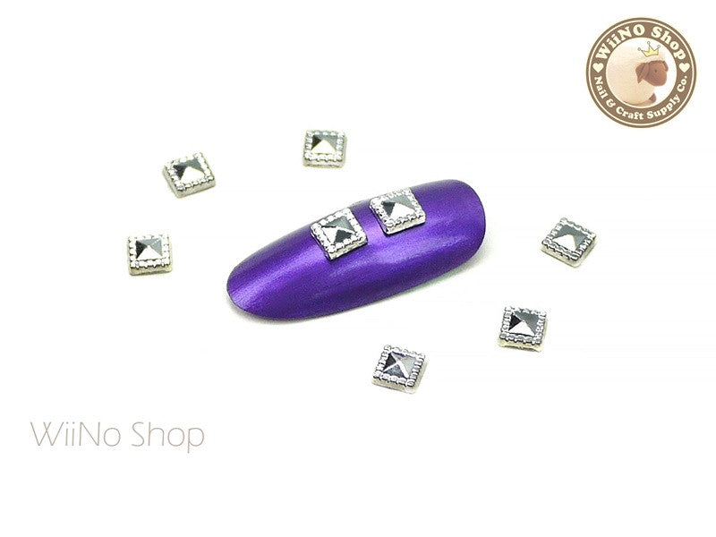 Silver Bead Square Nail Metal Charm - 4 pcs