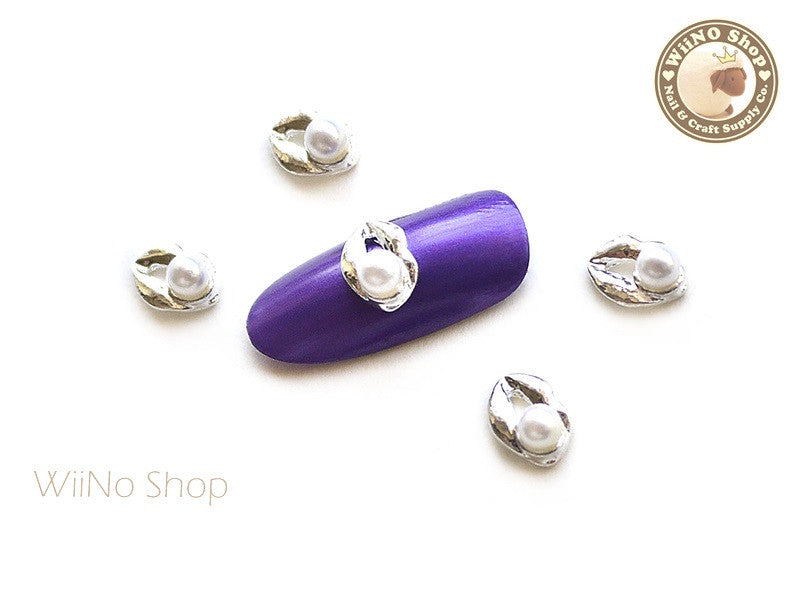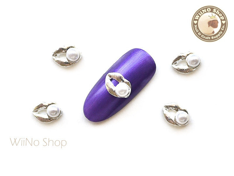 Silver Pearl Lips Nail Metal Charm - 2 pcs