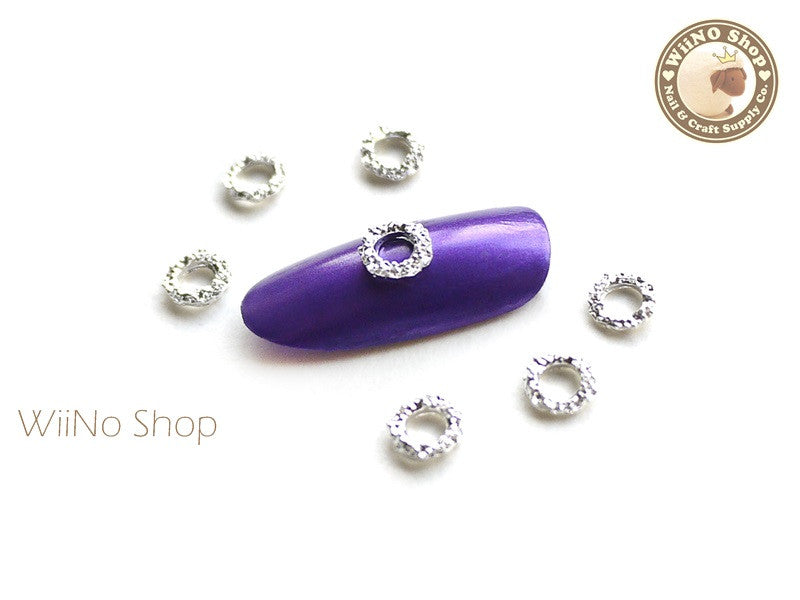 Silver Round Bead Frame Nail Metal Charm Nail Art - 4 pcs