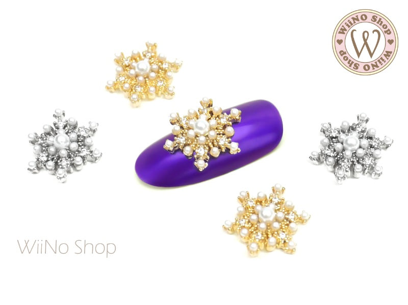 Snowflake Pearl Crystal Nail Jewelry Charm - 2 pcs
