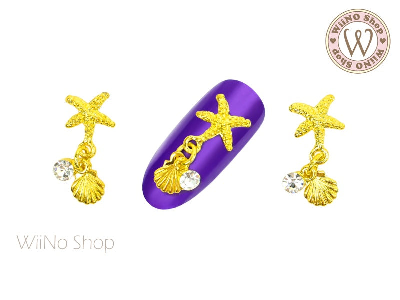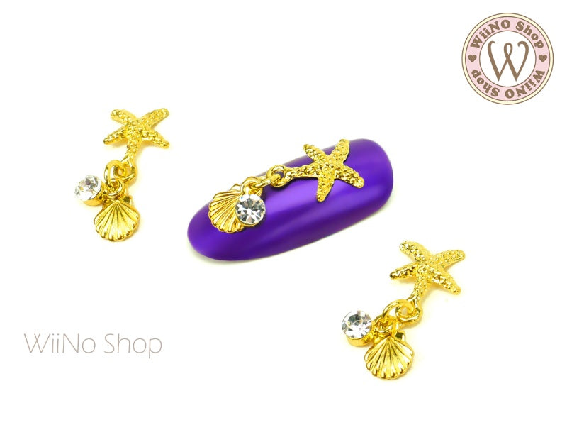 Starfish Seashell Crystal Nail Dangle Charm - 2 pcs