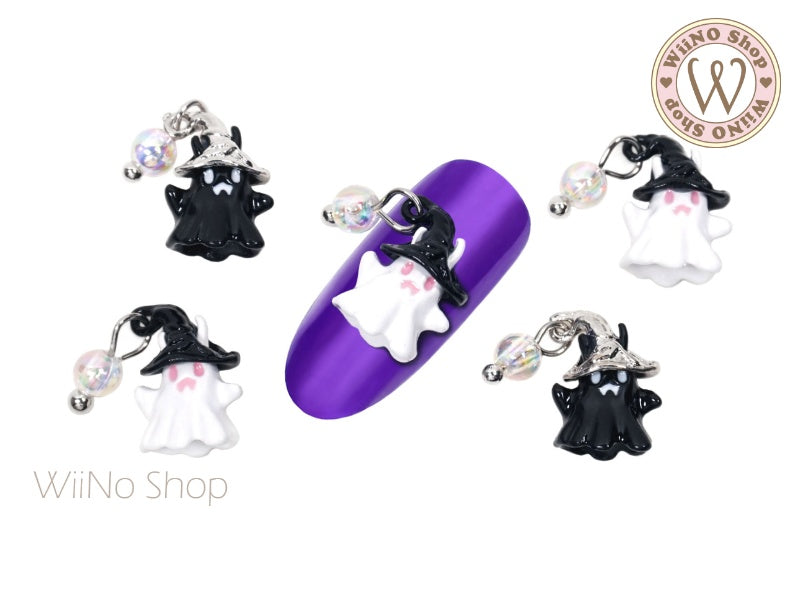 3D Ghost with Witch Hat Nail Art Dangle Charm - 2 pcs