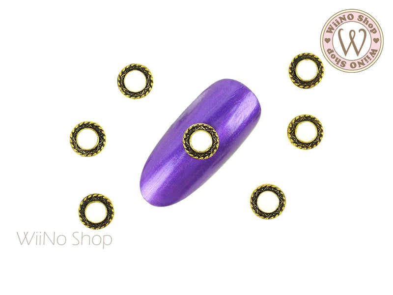 Round Antique Gold Bohemian Nail Metal Charm - 2 pcs