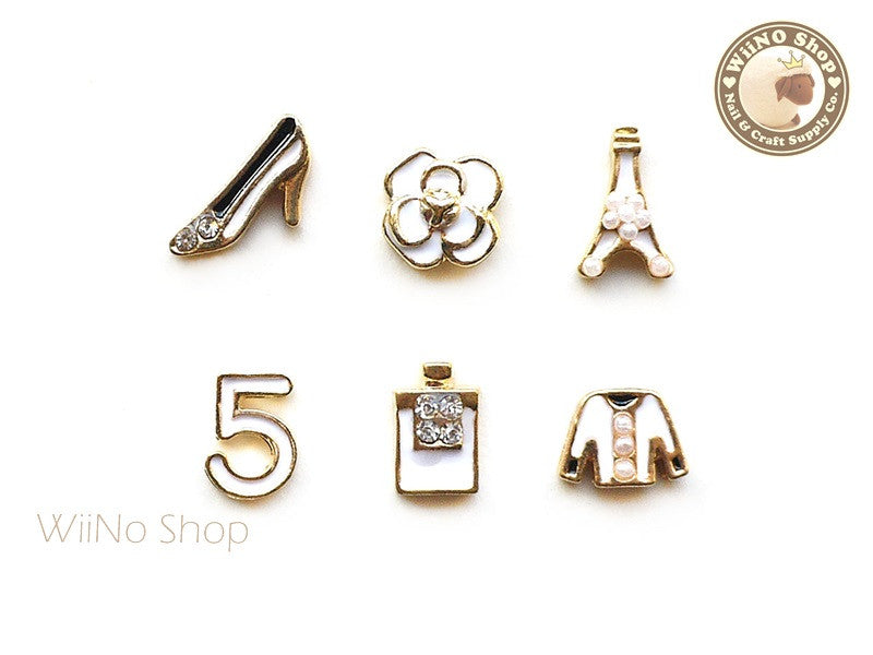 White CoCo Fashion Nail Metal Charm Nail Art - 6 pcs