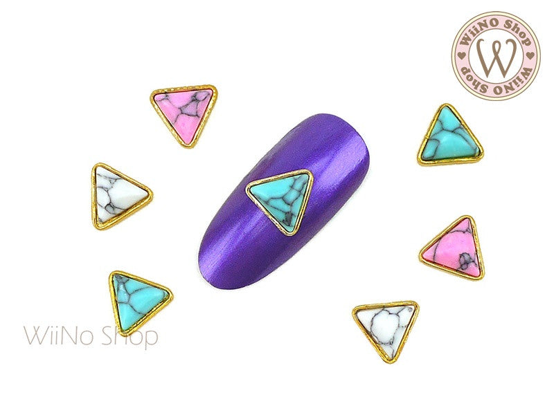 Triangle Turquoise Gemstone Nail Metal Charm - 2 pcs