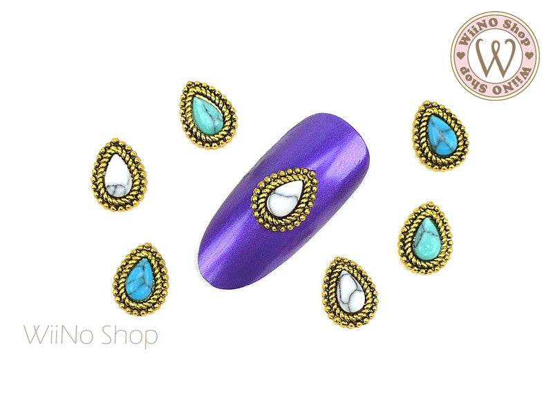Drop Turquoise Gemstone Bohemian Nail Metal Charm - 2 pcs