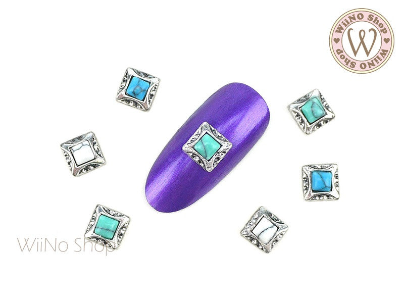 Square Turquoise Gemstone Bohemian Nail Metal Charm - 2 pcs