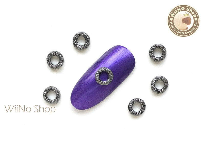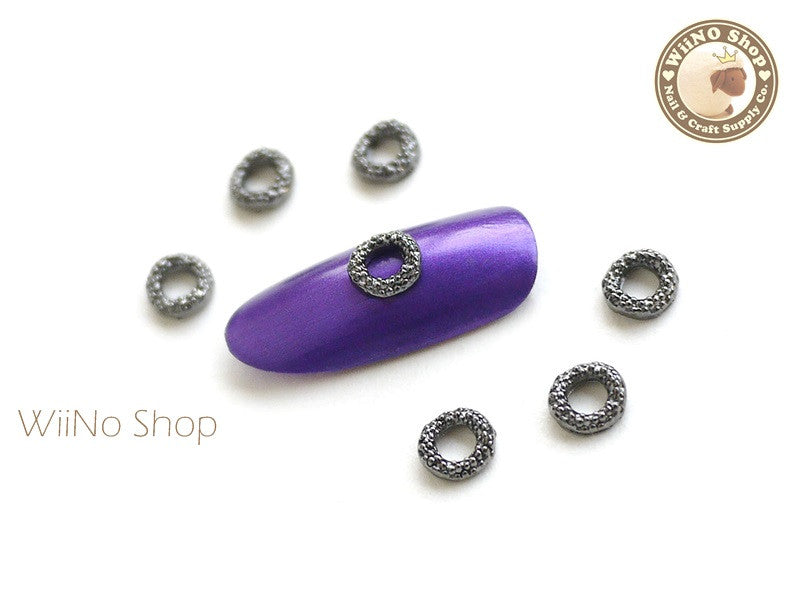Gunmetal Round Bead Frame Nail Metal Charm Nail Art - 4 pcs