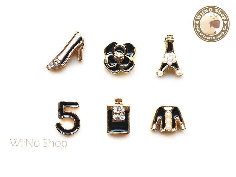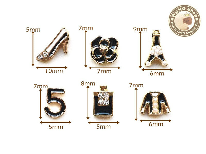 Black CoCo Fashion Nail Metal Charm Nail Art - 6 pcs
