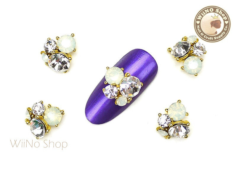White Opal Cluster Nail Metal Charm Nail Art - 2 pcs