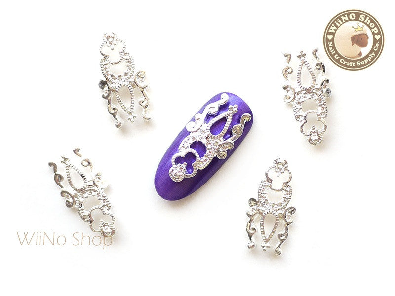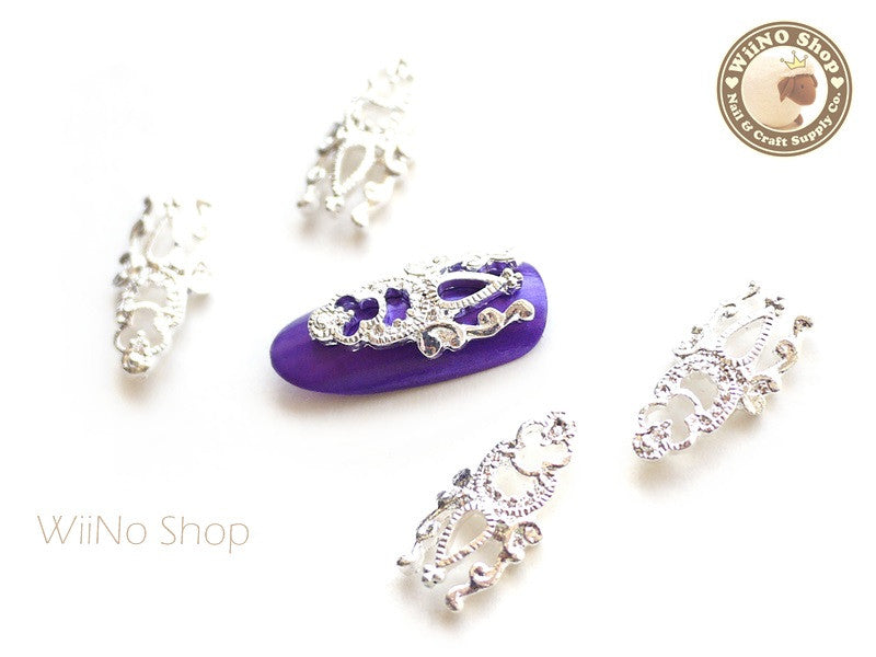 Silver Vintage Long Hollow Pattern Nail Metal Charm - 2 pcs
