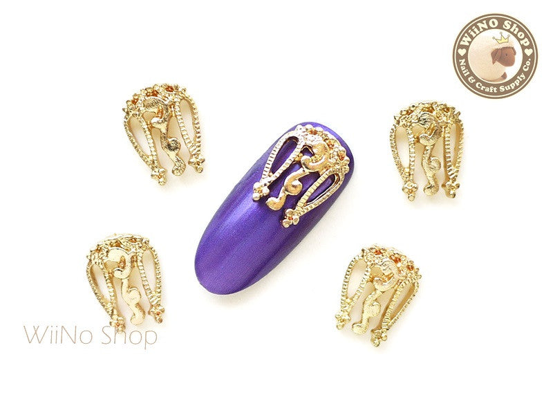 Gold Vintage Hollow Pattern Nail Metal Charm - 2 pcs
