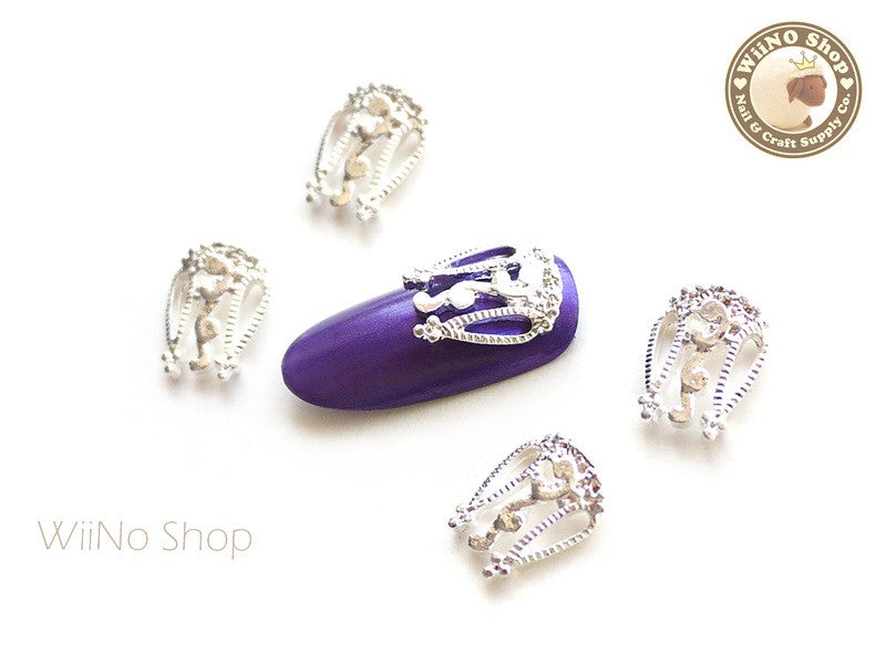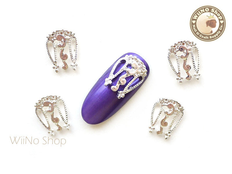 Silver Vintage Hollow Pattern Nail Metal Charm - 2 pcs