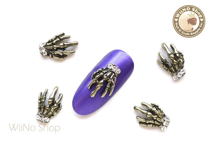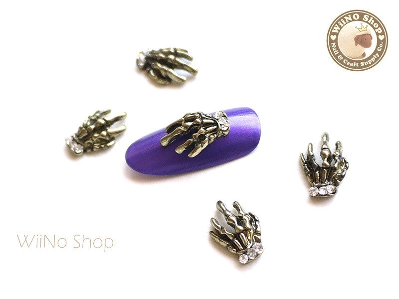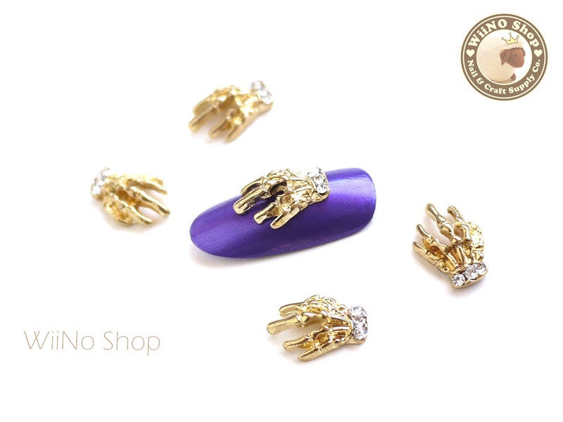 Gold Skeleton Hand Nail Metal Charm - 2 pcs