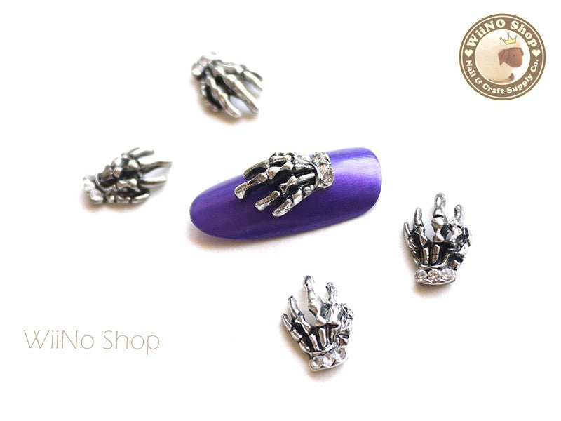 Silver Skeleton Hand Nail Metal Charm - 2 pcs