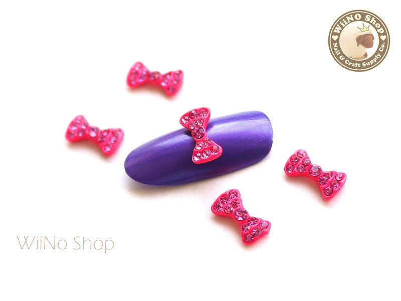 Neon Pink Crystal Bow Nail Metal Charm Nail Art - 2 pcs