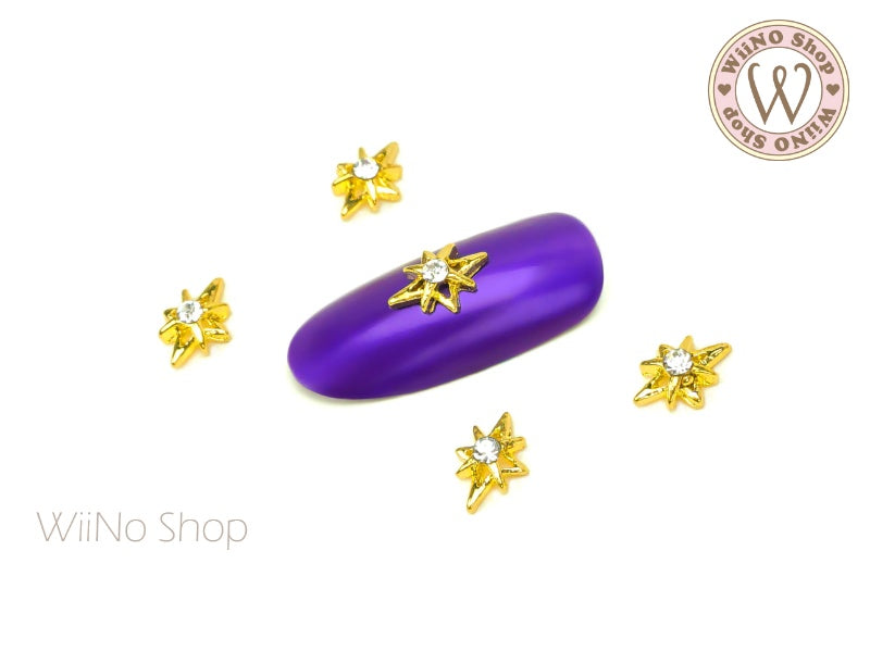 Hollow Shine Star with Clear Crystal Nail Metal Charm - 2 pcs