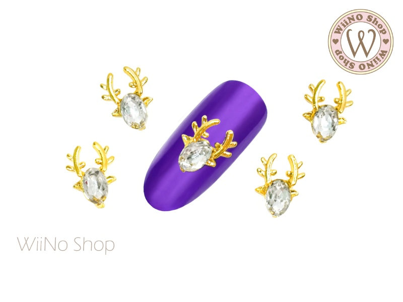 Crystal Reindeer Nail Metal Charm - 2 pcs