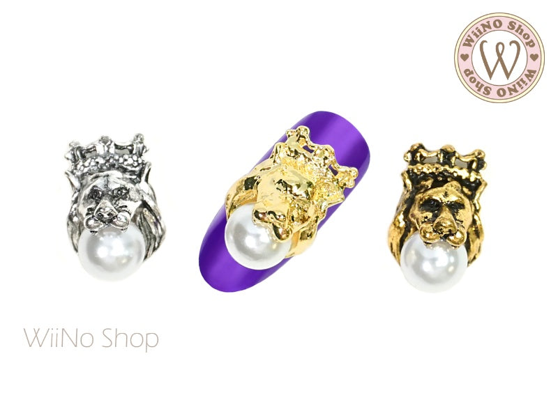Peral Lion Head Nail Metal Charm - 2 pcs