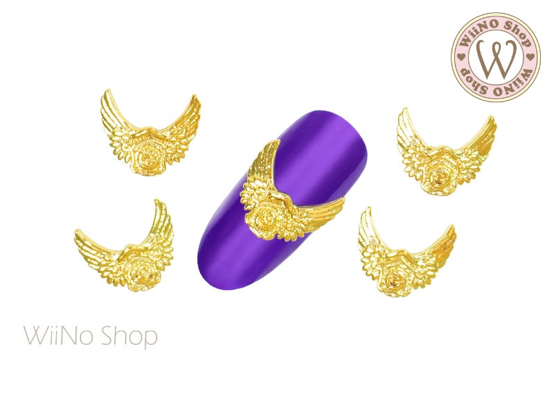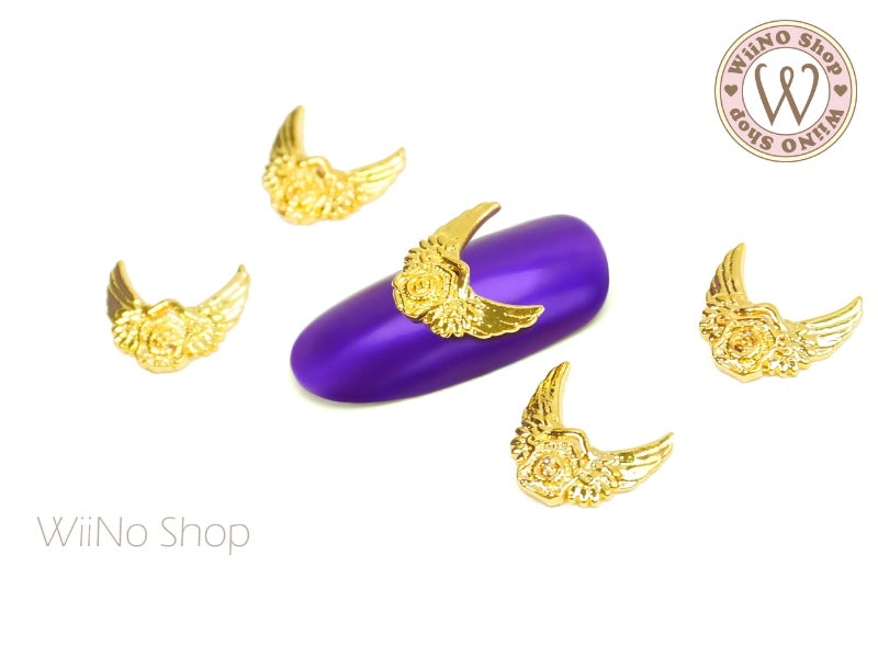 Crystal Heart Wings Nail Metal Charm - 2 pcs