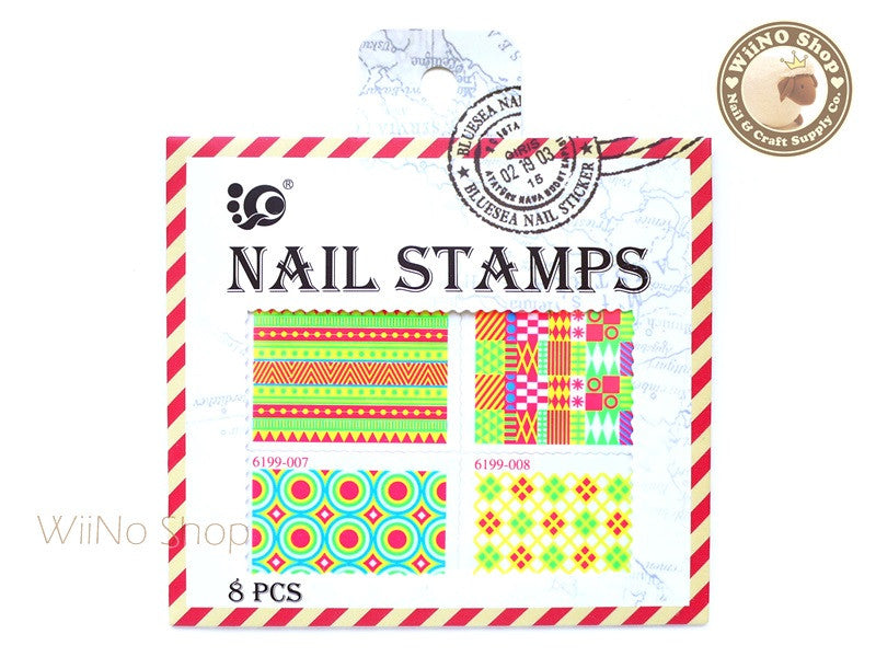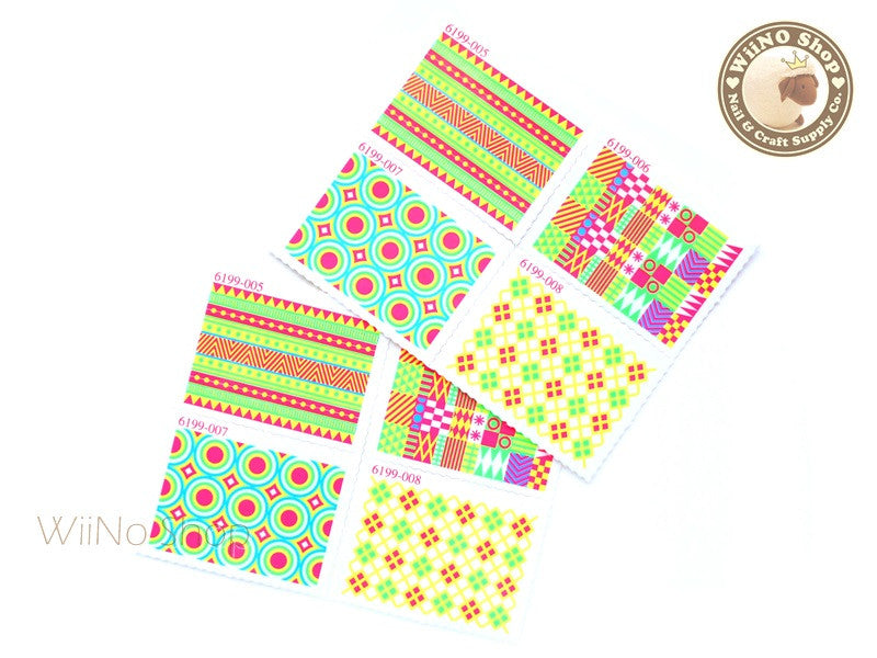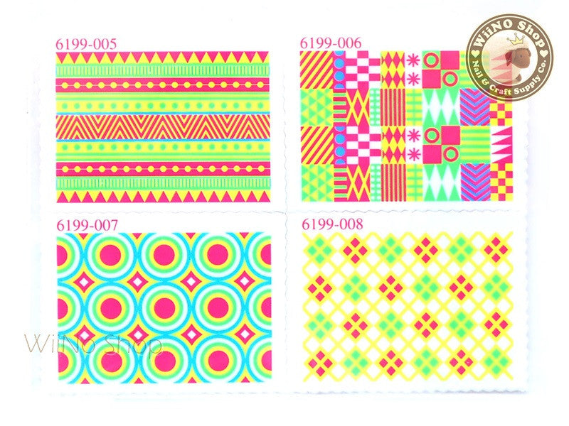 Neon Pattern Stamp Water Slide Nail Art Decals - 1pc (BLS02)
