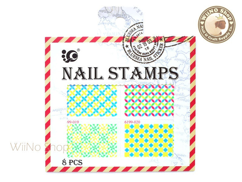Neon Pattern Stamp Water Slide Nail Art Decals - 1pc (BLS05)