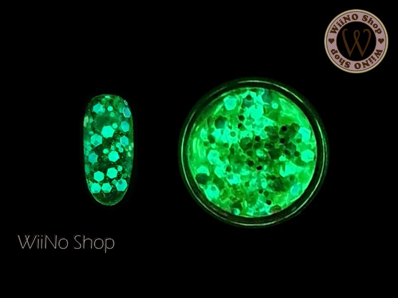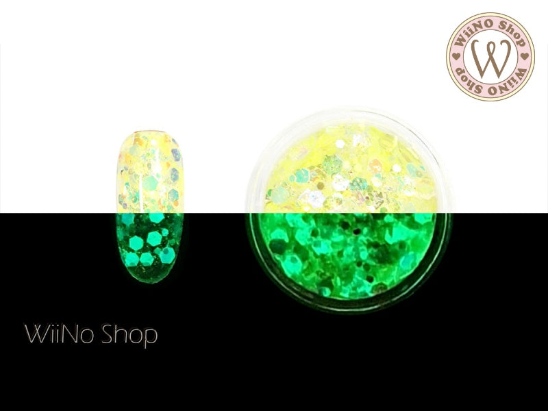 Neon Yellow Glow in The Dark Hexagon Mix with Glitter Dust (GD02)