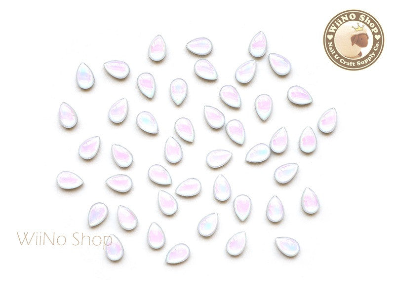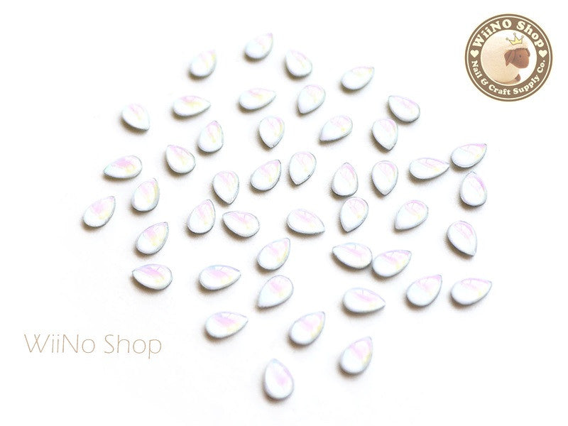 4 x 6 mm AB Rainbow Opal Drop Flat Back Acrylic Cabochon Nail Art - 10 pcs