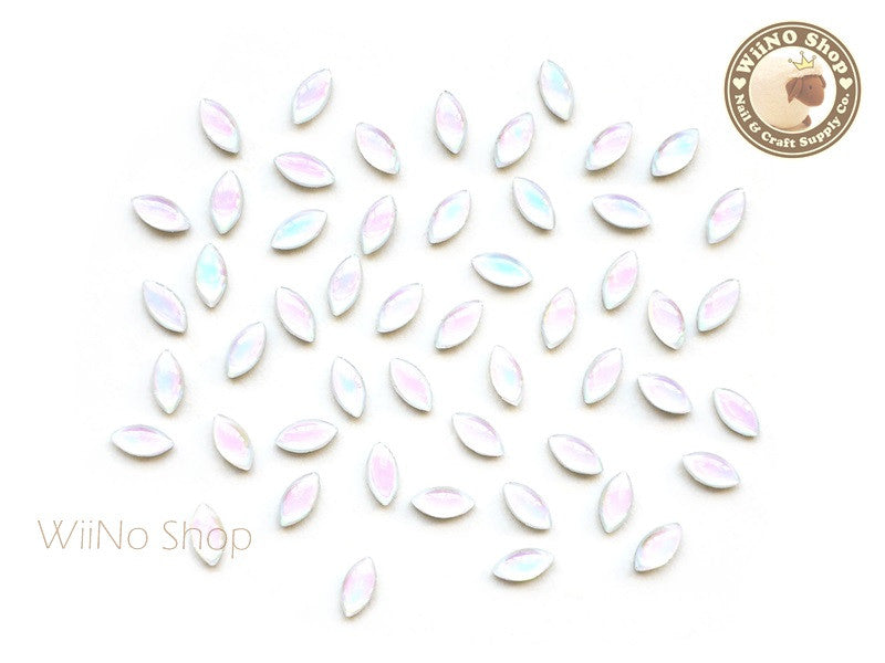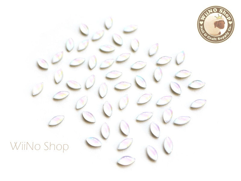 3 x 6 mm AB Rainbow Opal Marquise Flat Back Acrylic Cabochon Nail Art - 10 pcs