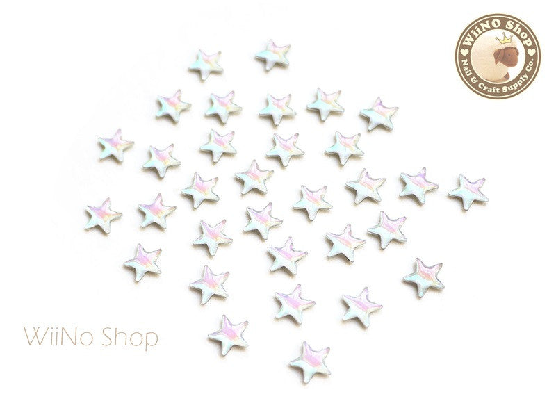 7mm AB Rainbow Opal Star Flat Back Acrylic Cabochon Nail Art - 10 pcs