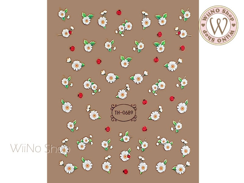 Ladybugs & Chamomile Adhesive Nail Art Sticker - 1 pc (TH-0689)