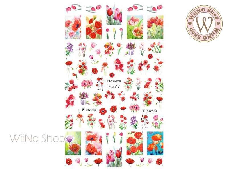 Poppy Flowers Adhesive Nail Art Sticker - 1 pc (F577)
