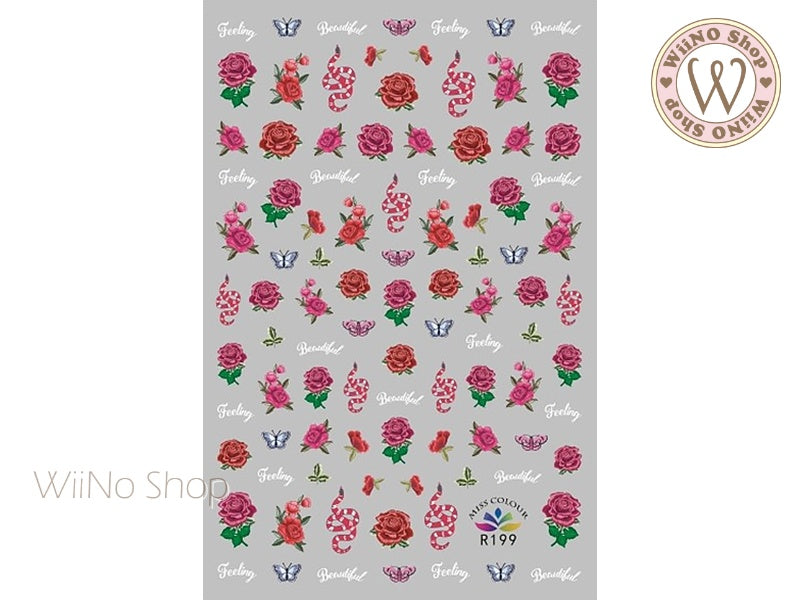 Snake & Rose Adhesive Nail Art Sticker - 1 pc (R199)