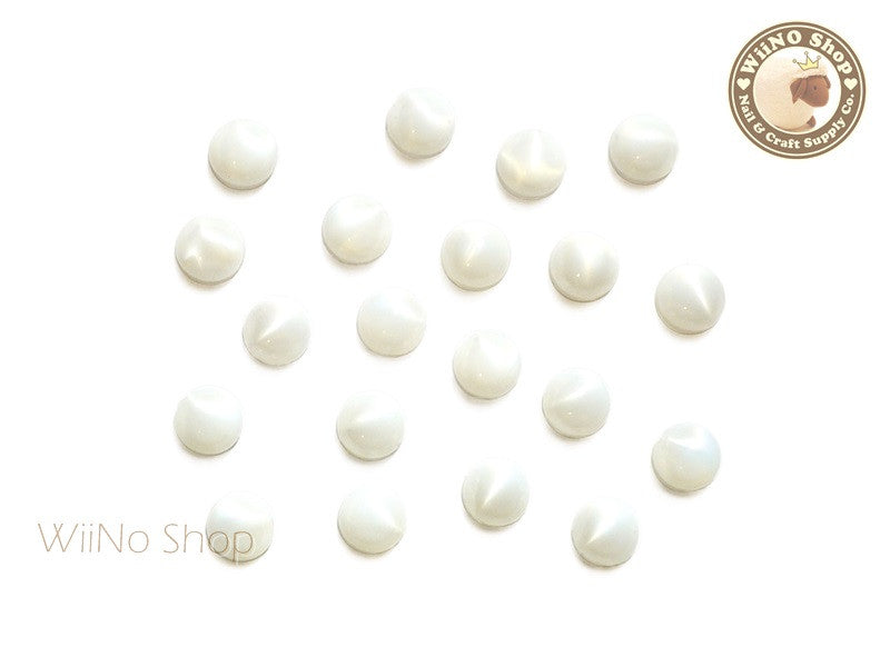 4mm White Opal Half Round Flat Back Acrylic Cabochon Nail Art - 15 pcs