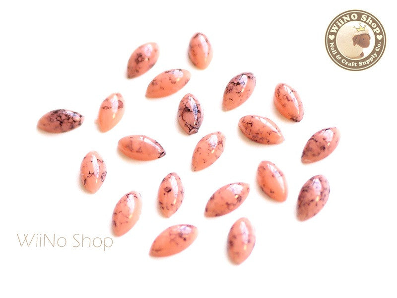 4 x 8mm Half Marquise Peach Turquoise Flat Back Acrylic Cabochon Nail Art - 15 pcs