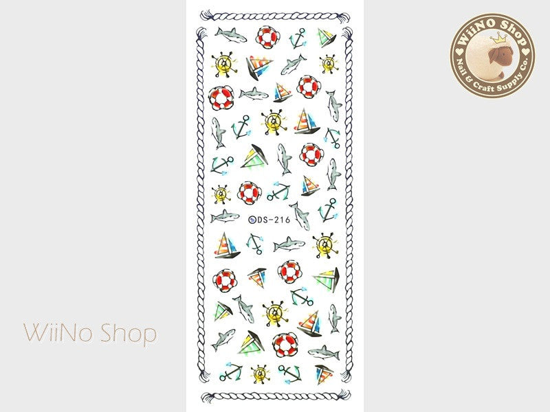 Anchor Boat Shark Water Slide Nail Art Decals - 1 pc (DS-216)