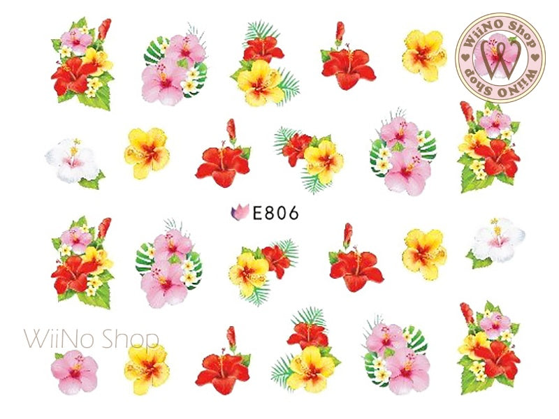 E806 Hibiscus Bouquet Adhesive Nail Art Sticker - 1 pc