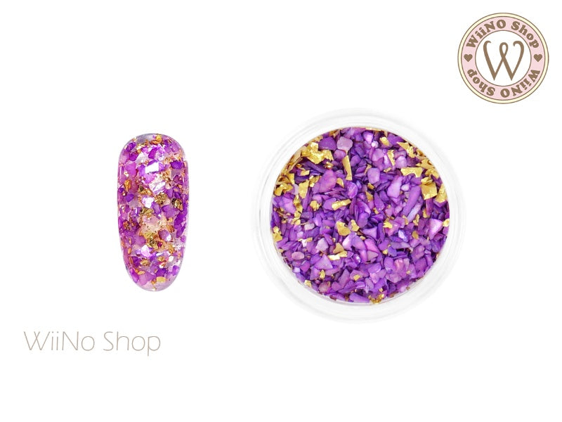 Purple Crushed Shell with Gold Foil Nail Art Decoration