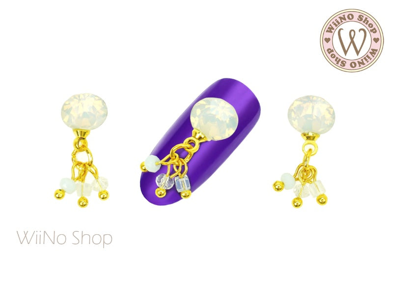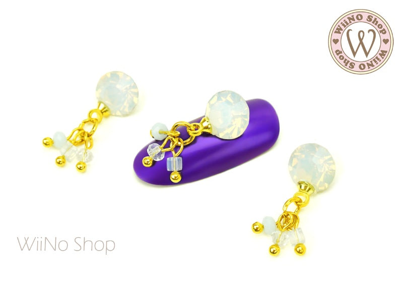 White Opal Crystal Beads Nail Dangle Charm - 2 pcs