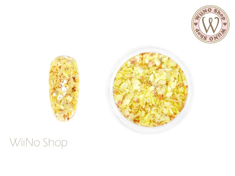Yellow Crushed Shell with Rose Gold Foil Nail Art Decoration