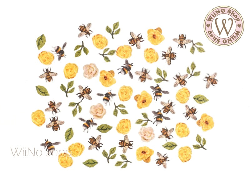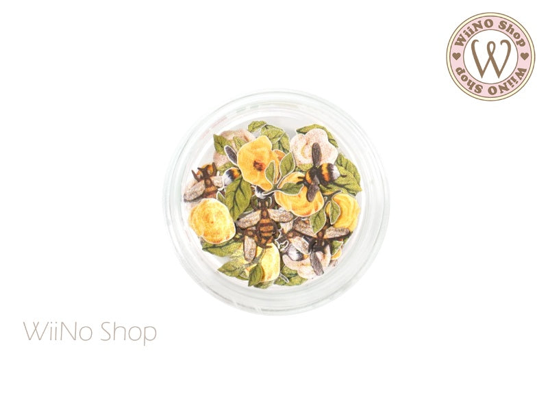 Bee & Yellow Rose Flower Nail Art Sequin Decoration (F12)