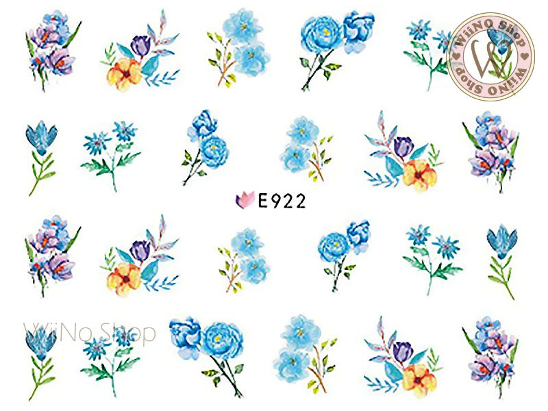 E922 Blue Watercolor Floral Adhesive Nail Art Sticker - 1 pc