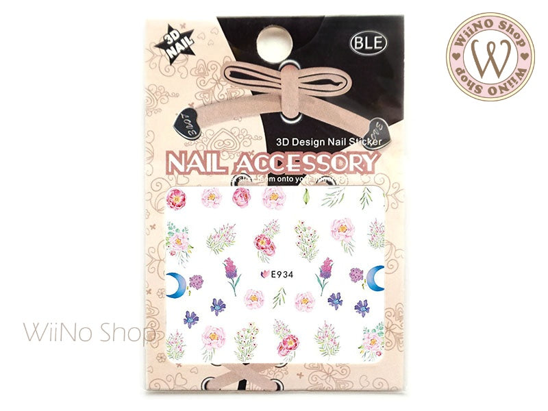 E934 Watercolor Peony Flower Adhesive Nail Art Sticker - 1 pc
