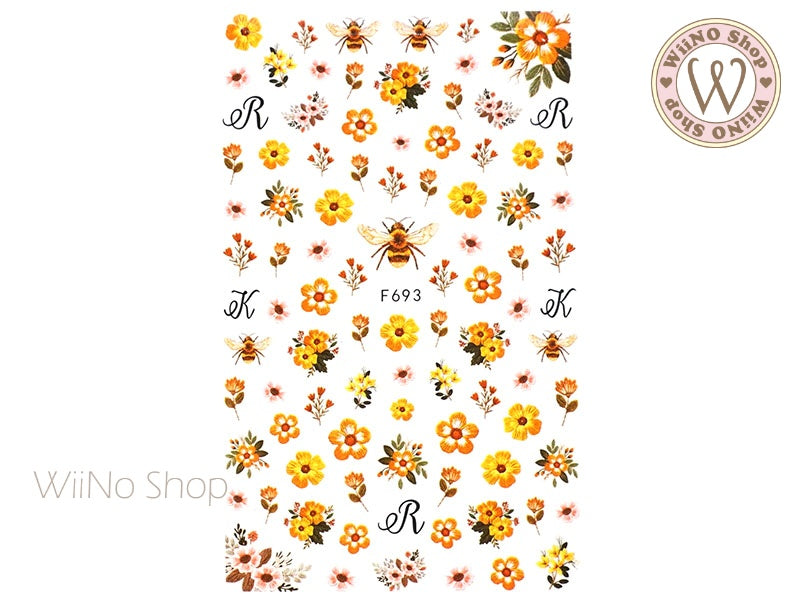 Embroidery Flower Bee Adhesive Nail Art Sticker - 1 pc (F693)