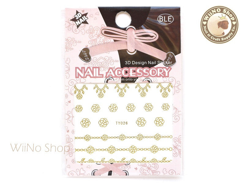 Gold Camellia Flower Chain Adhesive Nail Sticker Nail Art - 1 pc (TY026G)