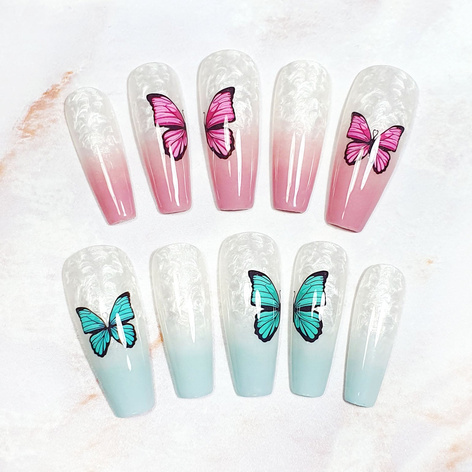 Pink Butterfly Adhesive Nail Art Sticker - 1 pc (TH-1160)