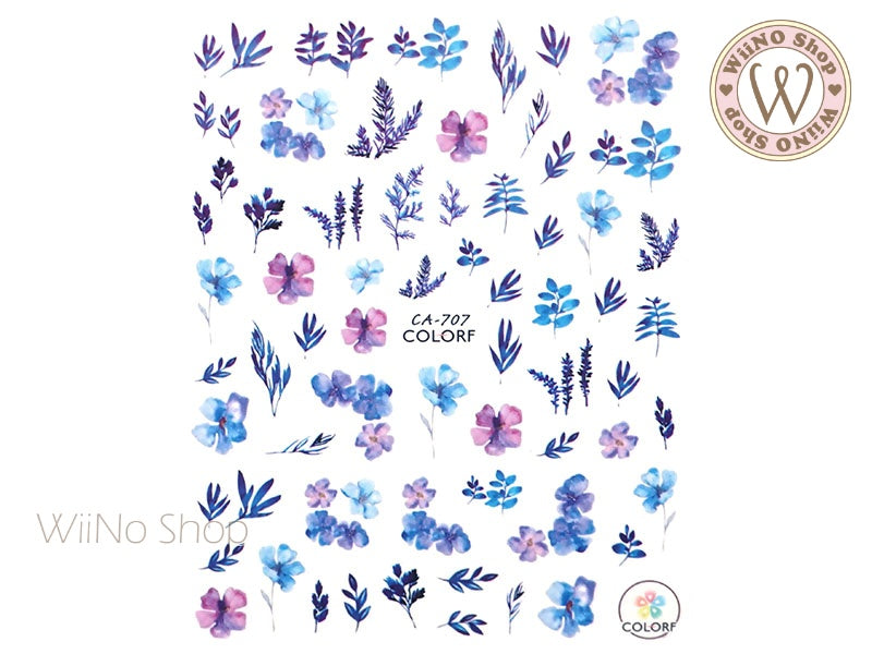 Purple Watercolor Flower Adhesive Nail Art Sticker - 1 pc (CA-707)