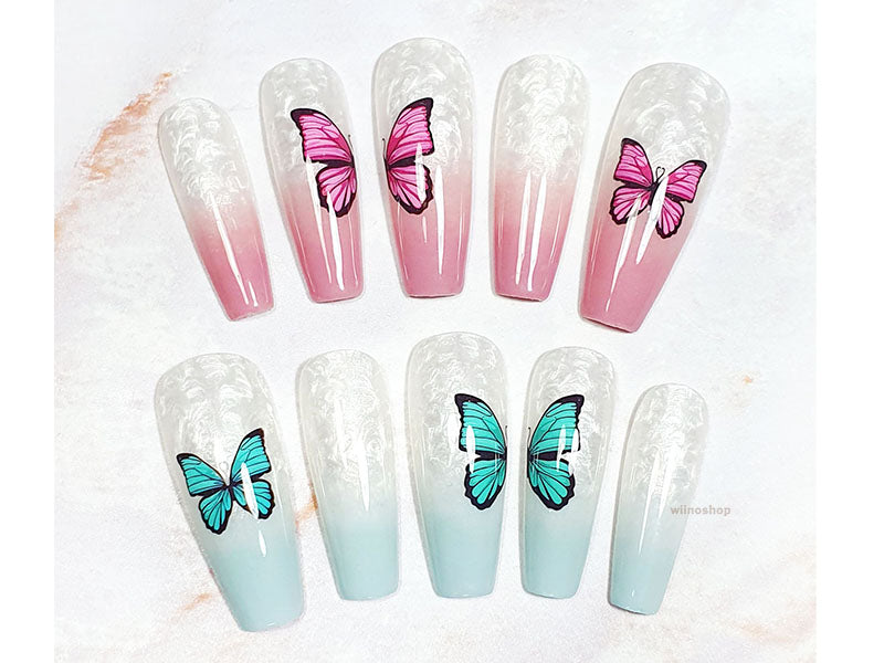 Turquoise Butterfly Adhesive Nail Art Sticker - 1 pc (TH-1159)