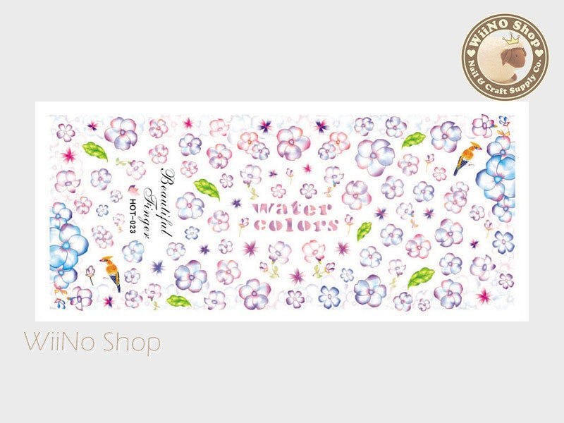 Water Color Style Purple Flower Water Slide Nail Art Decals - 1pc (HOT-023)