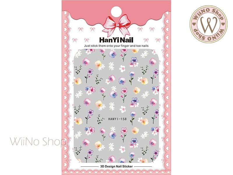 Watercolor Pansy Flower Adhesive Nail Art Sticker - 1 pc (HY-158)